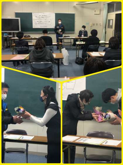 令和2年度最後の代表委員会を開催しました。各ご担当者から令和2年度のご報告を来年度への引継ぎがありました。また退任される役員の方に花束の贈呈がありました。長い間ありがとうございました!代表委員の皆様、一年間ありがとうございました。来年度もよろしくお願いいたします。