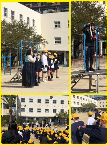 月目標の「元気にあいさつをしよう」のお話がありました。「朝の教室、みんな元気にあいさつできたかな?」「あいさつは、お互いに気持ちの良い一日を始めるためにします」「みんなで明るく、元気に朝のあいさつをしましょう」・・では、校長先生と朝のあいさつをします!(校長先生とだけではなく、みんなお互いにあいさつする気持ちでね!おはようございます!とてもさわやかな素敵な声が校庭に響きました)
