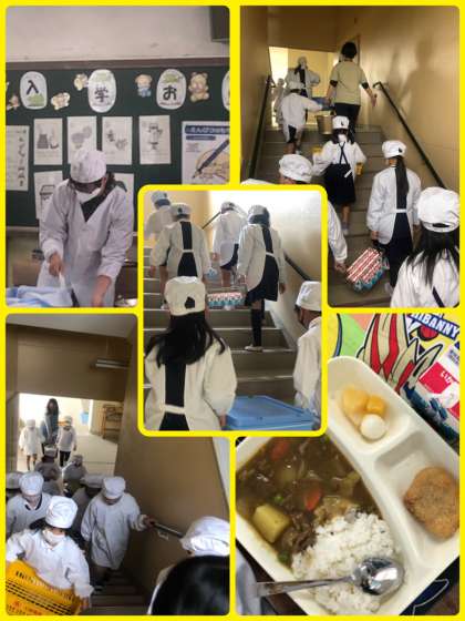 カツカレー!!カレーは子どもたちの人気No.1!ですが・・食缶が重いのです。階段の「のぼり」がきつい!頑張れ!