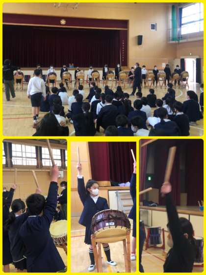 基本が大切です。まずは振り上げた手が真上で止まること。腕とバチが一直線になって、天井に突き刺さるように!バチの持ち方も大切です。正しく持つと太鼓の面にきれいにバチがあたり、トーンといい音がします。何度も練習します。