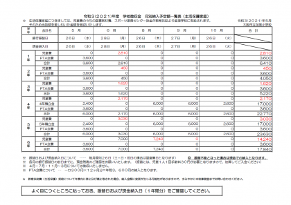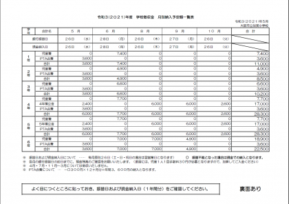 ※上記の2枚目の「令和3(2021)年度 学校徴収金 月別納入予定額一覧表(生活保護家庭)」の 赤字 のところは金額が変更になっています。