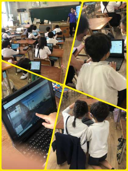写真一番下:3年生がタブレットで地域の様子を調べる学習をしていました。タブレットに慣れて、オンライン学習に繋がるといいですね。