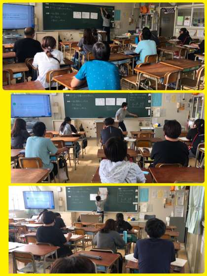 今日は、研究授業を担当する先生が、事前準備の「プレ授業」と呼ばれている模擬授業をしました。子ども役は先生たち(15名ほど)です。