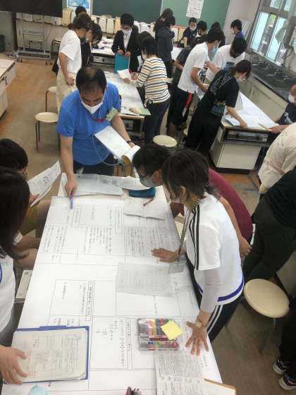 今日の子どもたちは、いつもにもまして真剣に取り組んでいました。前のめりです。今日の5時間目、6年生の研究授業での様子です。(写真:放課後の授業検討会)