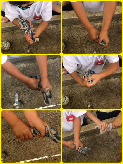 今日、1年生の掃除の様子を見に行くと、全く問題なく、ぞうきんをしぼっていました。