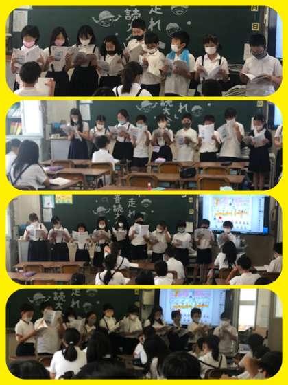 こくごの教科書から「走れ」を4つのグループに分かれて音読をしました。