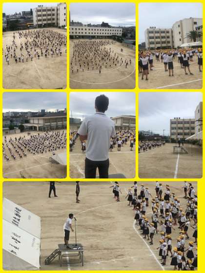 運動会に向けてラジオ体操の最初の練習を全校で行いました。