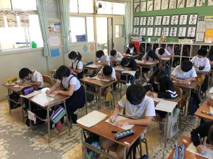 加美小学校の規模(児童数500名ほど)で「隂山メソッド」を導入することは難しいと言われていました。毎朝、音読すること、百ます・漢字のプリントをすることは、子どもたちにも挑戦ですが、大量のプリントの準備や、音読教材の選定、教室にいる40人の子どもたちよりも大きな声で音読する先生たちは導入にあたって、かなりの覚悟が必要です。