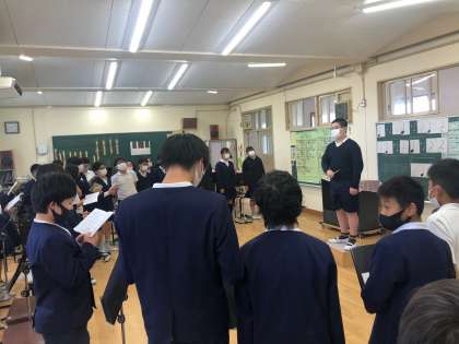 「翼をください」の歌声が聞こえてきました。6年生は、やっぱりこの曲ですね。