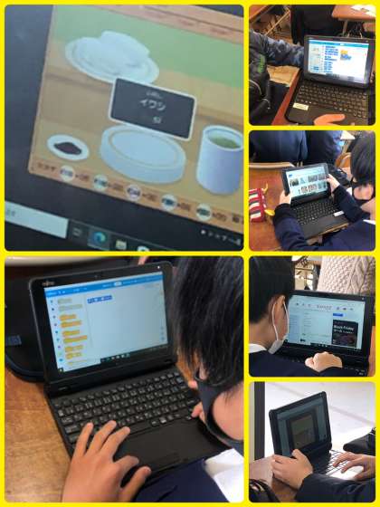 このクラスは半数以上の子どもたちがタブレットでプログラミングをしたり、キー操作のトレーニングをしたりしていました。
