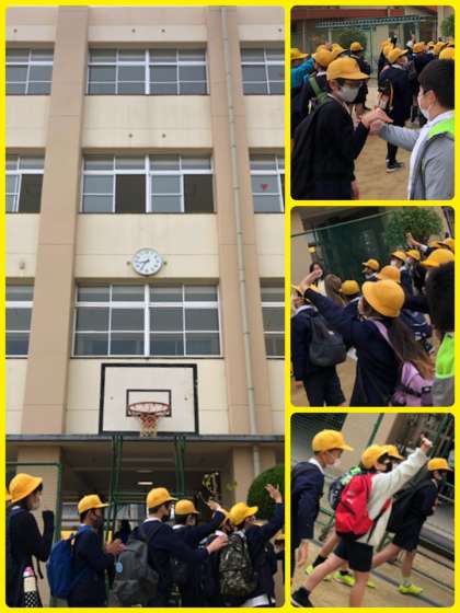 初めての校外学習です。鶴橋・コリアタウンに行ってきます。校舎から手を振る見送りの先生たちに、子どもたちも手を振り返していました。