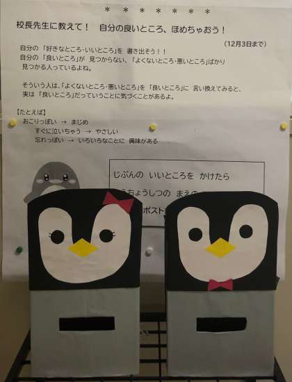 校長室前の ペンギンポストに 入れてね!!!