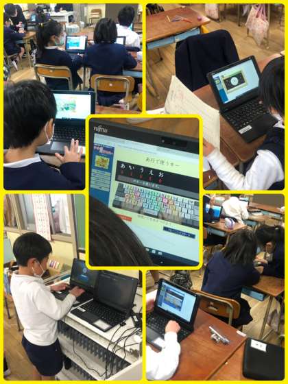 ひらがなを入力したり、数字で遊んだりしながら、タブレットに慣れ親しみ、学習に繋がるようにトレーニングしています。