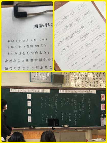 目標:身近なことを表す語句を集め文の中で使うとともに、言葉には意味による語句のまとまりがあることに気づいて語彙を豊かにすることができる。