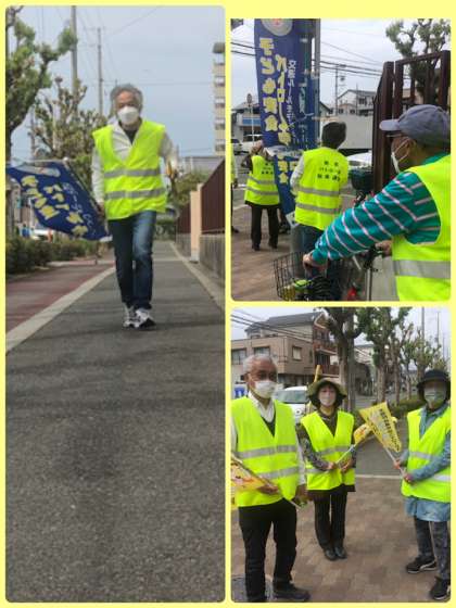 今日もあたたかな日でした。元気な一年生の下校時間。見守りをしていただきました。加美連合振興町会・第6町会の皆様、ありがとうございました。