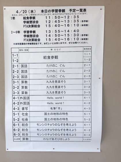 給食参観・学習参観・学級懇談会・PTA総会