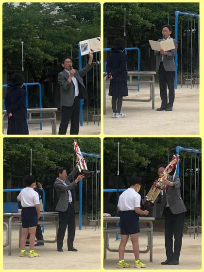 児童朝会では、5年生と4年生の子どもたちの表彰をしました。