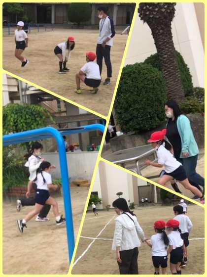 運動場を駆け回る子どもたちです。