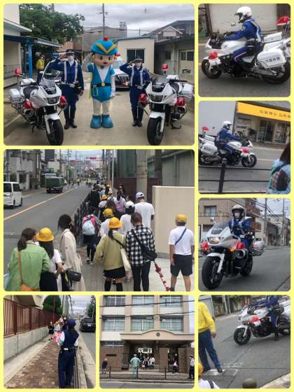 交通安全教室に駆けつけてくださった白バイ(交通機動隊)も下校時間に合わせて。学校の周辺を走ってくださいました。