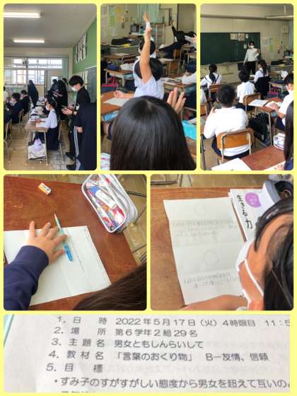 公開授業は、すべての先生が年一回、必ず実施します。指導力向上の研修の一環として行うものです。今日は、6年生のクラスで中堅の先生が公開授業をしました。若手・中堅・ベテランに関わりなく、全員が公開授業をします。