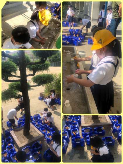 【1年生】おはよう! 朝顔にも朝ごはん!
