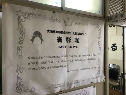 先週一週間、取り組んだ「あいさつ表彰」週間。