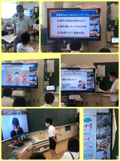NTTドコモ・スマホケータイ安全教室にご協力いただき実施しました。3クラス同時のOnline教室でした。多くの子どもたちが使っている携帯電話。ご存じの通り、マナーの問題については、報道などでも大きく扱われているところです。人権擁護委員の佐藤様にも、子どもたちが困ったときの対象方法や公的な窓口などについてお話をしていただきました。