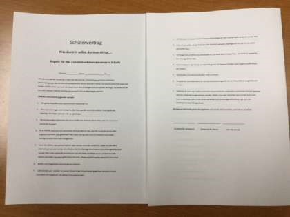 ドイツでは「学校」と「児童生徒」間で契約書(例:写真)を交わす学校があります。