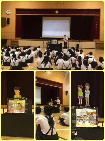 5年生を対象の授業です。警察に来ていただいて、お話を伺いました。