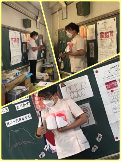 歯科衛生士のお二人と学校歯科医の先生の合計3名でご指導いただきました。ありがとうございます。
