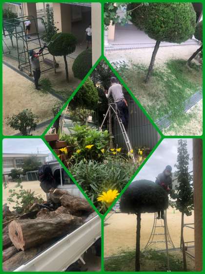 定期的に行われている管理作業です。本校は、管理作業員が一人のみの配置のため、業者に依頼して行いました。