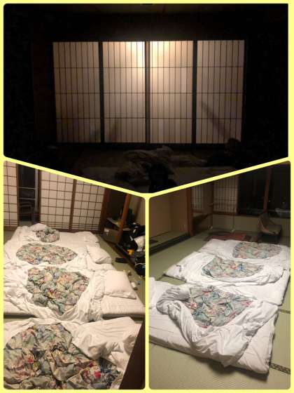 元気なはずです。就寝時刻は21:30でした。部屋を見てまわると、何部屋も空っぽです。ということは、どこかの部屋にたくさん集まってるってことかな?この部屋では映画と称して影絵のようなことをしていました。