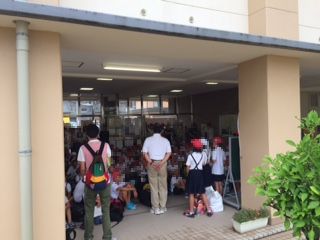 5年生全員、雨の中、元気に神鍋高原に向けて出発!