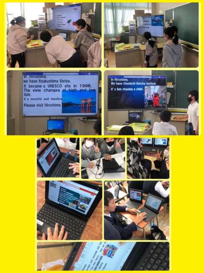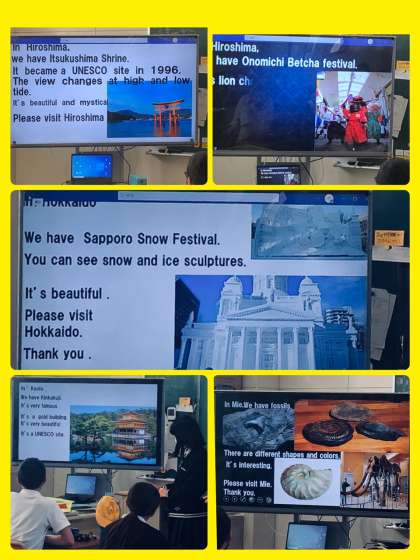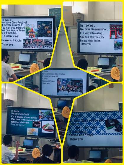 タブレットで作成したPowerPointの資料を大きな画面に映し、一人ひとりが発表しました。