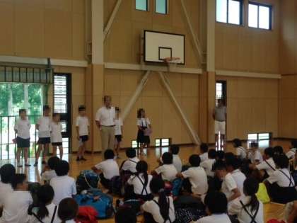 お世話になった宿の方に、感謝の気持ちを伝えています。