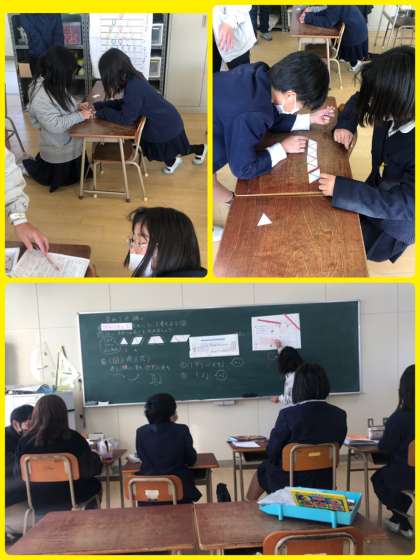 公開授業は、すべての先生が年一回、必ず実施します。指導力向上の研修の一環として行うものです。今日は、4年生の算数・習熟度別少人数クラスです。