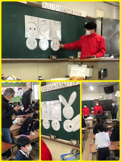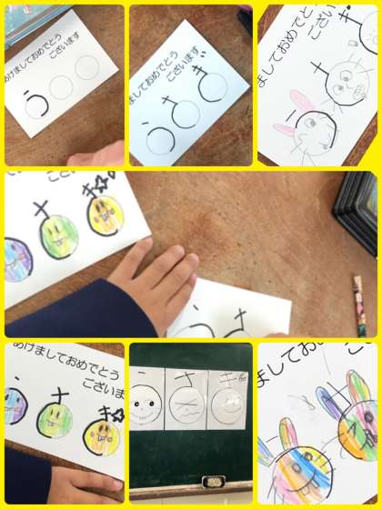 加美の校区に在る郵便局の皆様から、毎年、1年生が年賀状の書き方を習います。今年も来年の干支「うさぎ」をモチーフにしたかわいい年賀状の書き方を教えてもらいました。とてもかわいらしく、どのウサギも描いた子どもたちに似ている気がします。