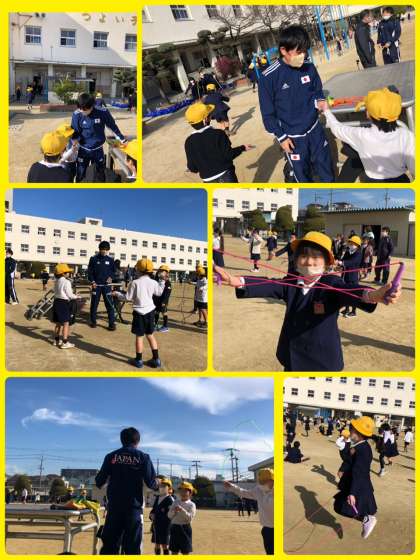 昨年11月、令和4年度 近畿ブロック協議会 会長賞『団体表彰』の受賞式(【PTA】令和4年度 近畿ブロック協議会 会長賞『団体表彰』)で野村PTA会長が、その式にゲスト出演した「なわとび世界チャンピオン」の黒野寛馬さんに果敢にコンタクトし、とんとん拍子で今日の「なわとび体験講座」が実現しました!!