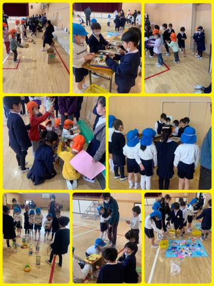 加美東保育園と加美第一保育所の子どもたち(来年度入学)が来校しました。1年生のお兄さんお姉さんと交流する時間を持ちました。