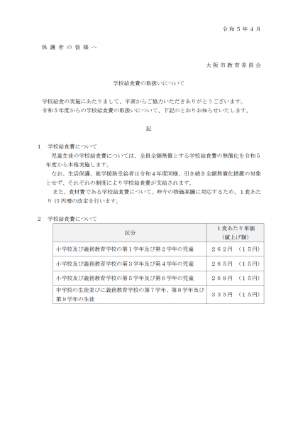 令和5年度学校給食費の取扱いについてのお知らせをご確認ください。