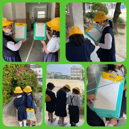 3年生、理科の学習が始まりました。「春さがし」をしていました。桜や菜の花を見つけていました。