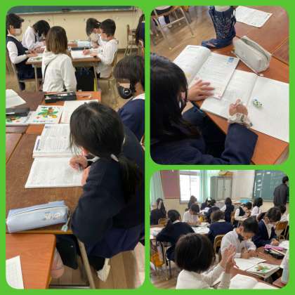 4年生の算数の授業の様子です。「大きな数」の学習をしています。一生懸命取り組んでいます。