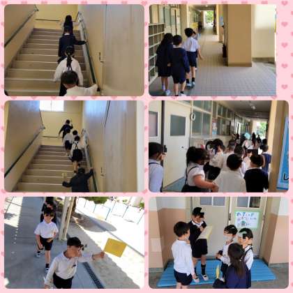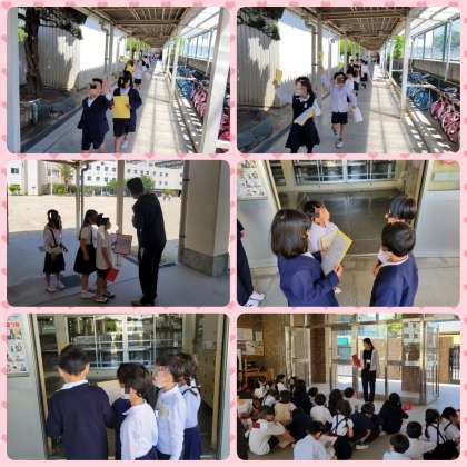 旗をもった2年生、各部屋や施設の前で、何をするところか紹介していました。