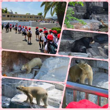 午後の見学に出発です。熊のエリアに来ました。ホッキョクグマは、水を浴びて涼しそうでした。
