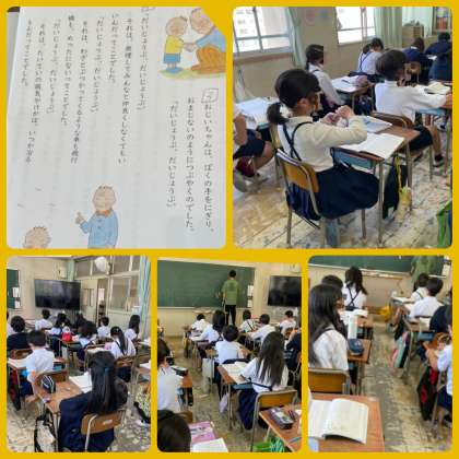 「だいじょうぶ だいじょうぶ」の教材を学習しています。ぼくとおじいちゃんのふれあいをえがいたお話です。