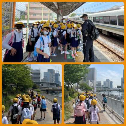 4年生の春の遠足は、「大阪市立科学館」です。元気に学校を出発しました。加美駅から福島駅まで電車に乗り、大阪市立科学館まで歩きます。