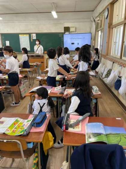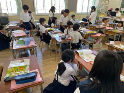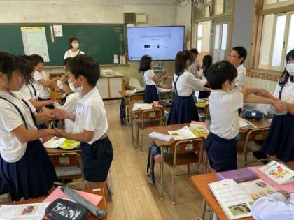 「茶摘み」をペアで歌いながら楽しく手遊びしています