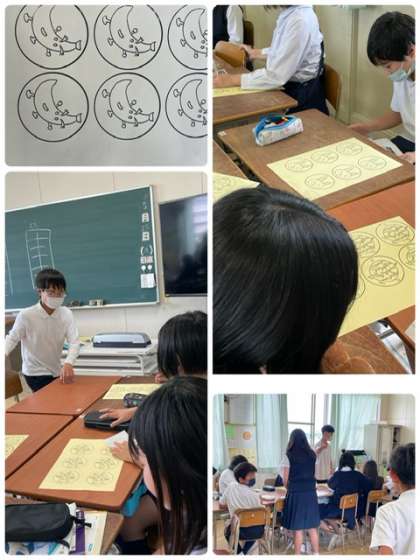 縦割り班活動で使う1.2年生のメダルを作っています。みんなお姉さん、お兄さんの顔です。