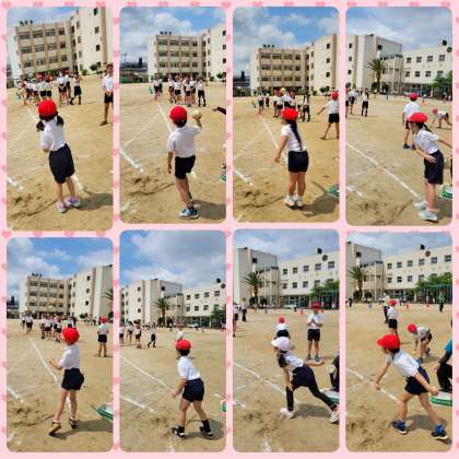 ソフトボール投げがありました。事前の体育学習時に投げ方の練習をしていたので、上手に投げることができました。