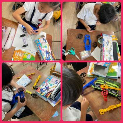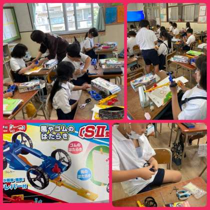 理科の学習の様子です。「風やゴムのはたらき」の実験をします。